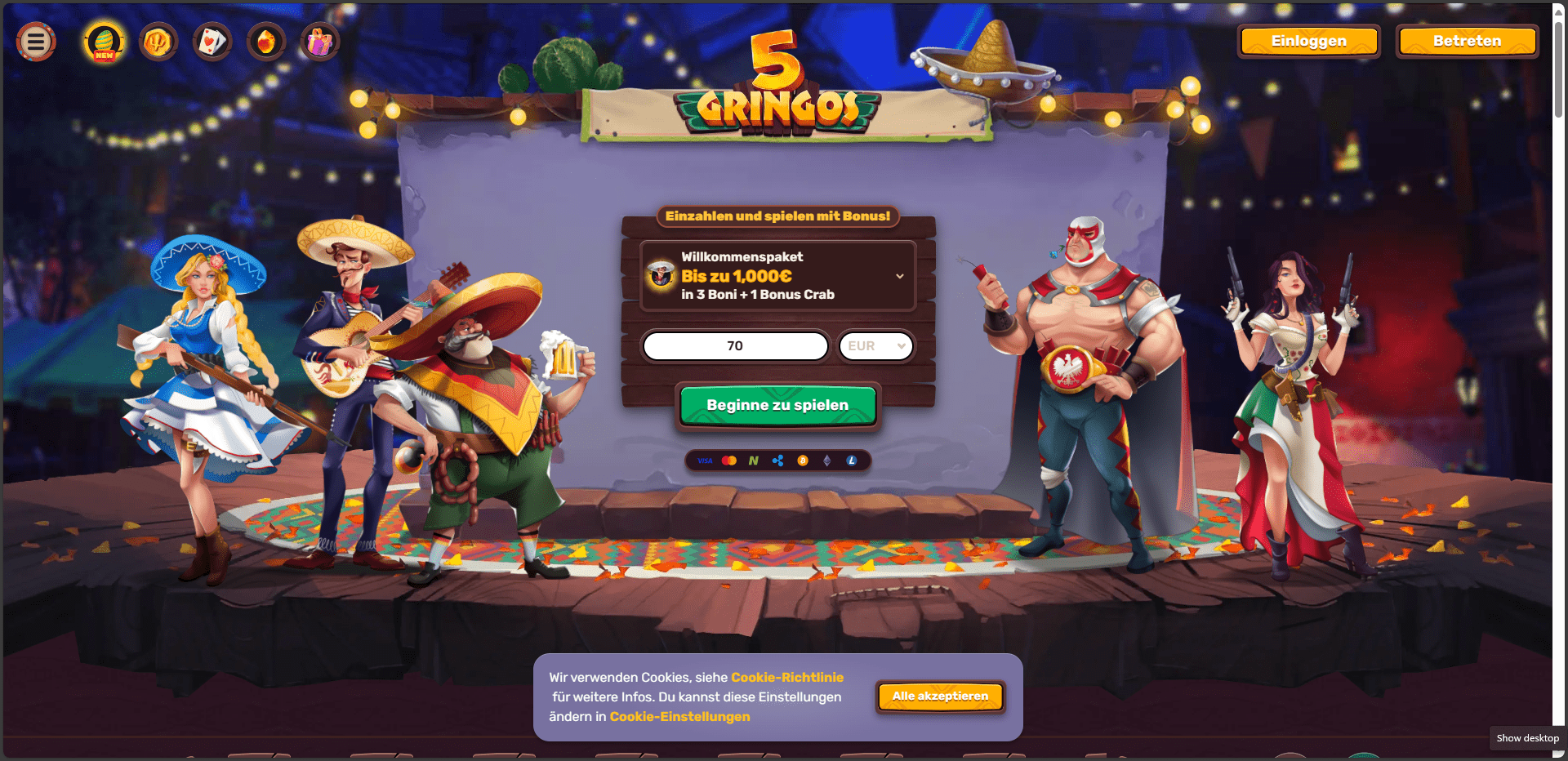 Untersuchen Sie die Spiele, die im Casino immer verfügbar sind. Die verschiedenen Arten von Boni, darunter Einzahlungsboni, Freispiele und wettfreie Boni, sowie die verfügbaren Bankoptionen. Ein weiterer Gesichtspunkt sind die mit den Boni verbundenen Wettanforderungen. Wenn Ihnen gefällt, was Sie sehen, klicken Sie auf die Schaltfläche „Registrieren“ des Casinos, um fortzufahren.