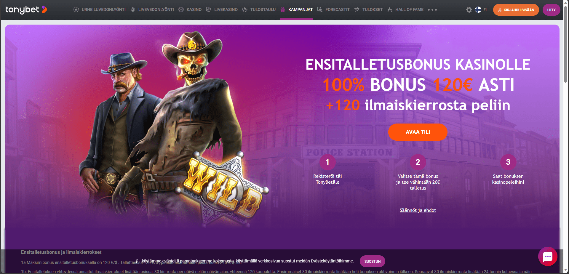 TonyBet Casino tarjoaa uusille kasinopelaajille jopa 220 euron tervetuliaispaketin sekä 170 ilmaispyöräytystä kahdella ensimmäisellä talletuksella. Äskettäin rekisteröityneet vedonlyöntifanit voivat saada 100 % tervetuliaisbonuksen jopa 100 € ensimmäisellä talletuksella. Nykyiset asiakkaat voivat nauttia useista erilaisista kampanjoista, kuten perjantain uudelleenlatausbonuksesta, Battle for Treasures -turnauksesta, jonka kuukausipalkintopotti on 15 000 €, Forecasts-kilpailuista urheiluvedonlyönnissä ja kahdesta erillisestä VIP-ohjelmasta kasino- ja urheiluvedonlyöntiin.